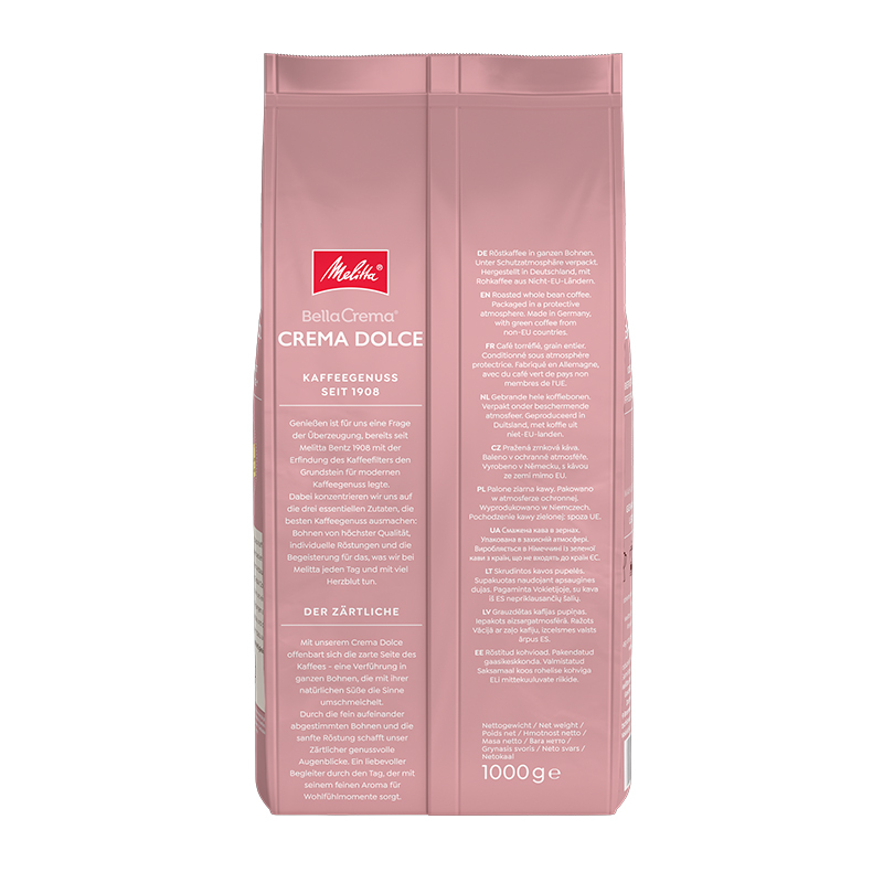 Melitta BellaCrema Crema Dolce — це справжнє чуттєве задоволення в кожній чашці кави. Ця кава розкриває ніжну і м'яку сторону кави, даруючи вам приємне відчуття природної солодкості, яка ніжно огортає ваші органи чуття.